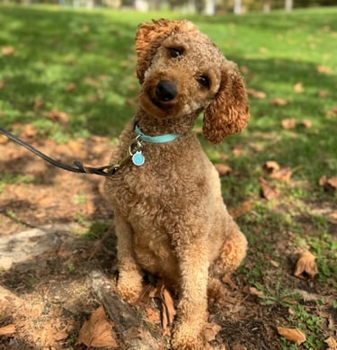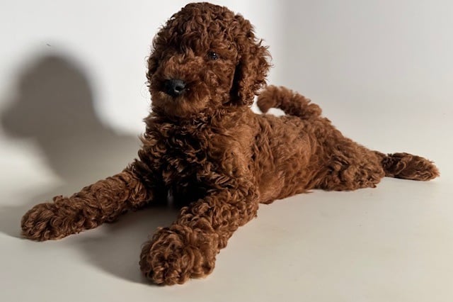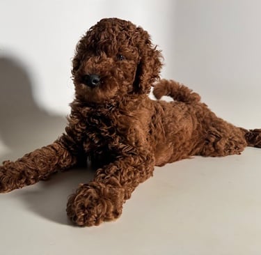 Our Standard size are offspring of Ruby (AKC Red Standard Poodle) and another standard size dog. (Golden Retriever, Poodle, Standard Doodle) Depending of the stud, depends on the type of doodle you will get. Ruby will likely have 1 or 2 more litters, get spayed and retire.
